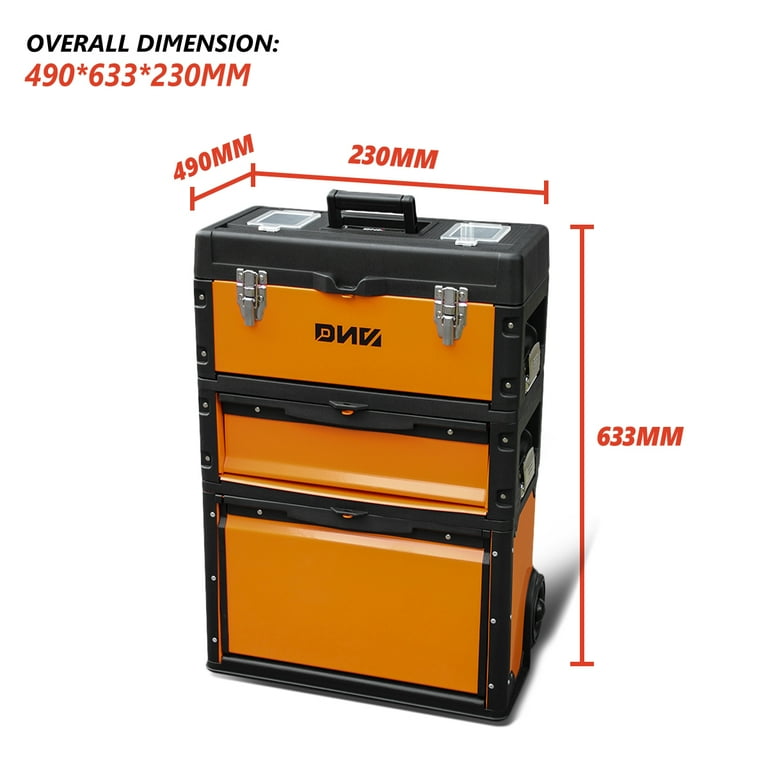 Dna Motoring Odaof Tools 00004 Orange Black 3 Tier Stackable Storage Tool Box Rolling Extendable Handle Trolley 49cm W X 63 3cm H X 23cm Walmart Com